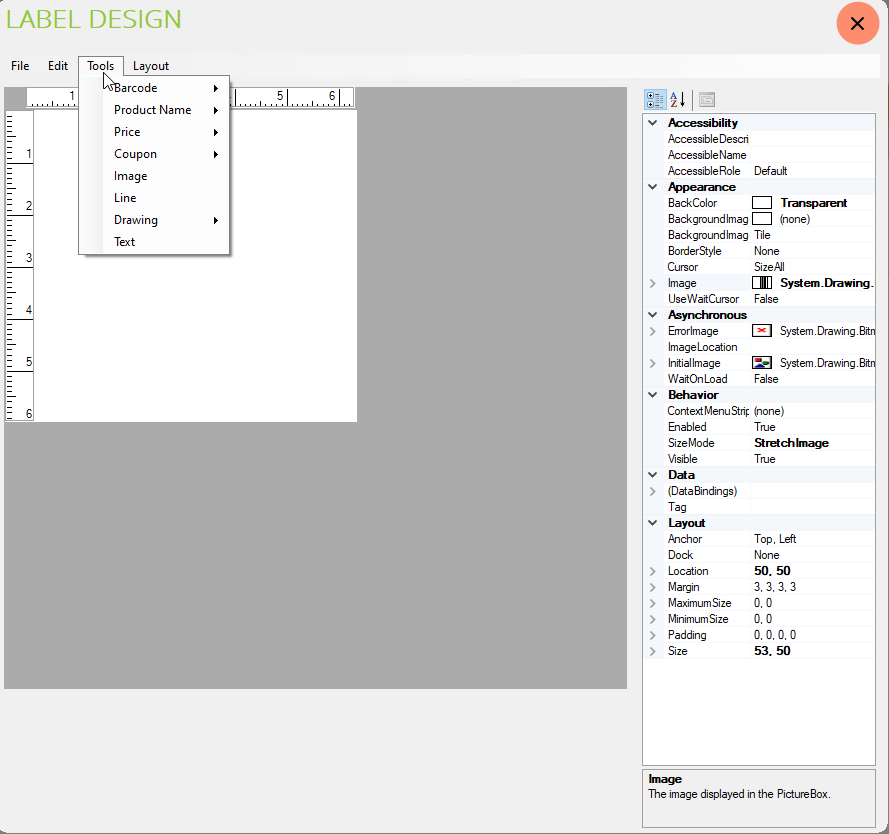 When you click on submit pop will open where you create the design for the labels using the Tools option. Please refer to the below screenshot: