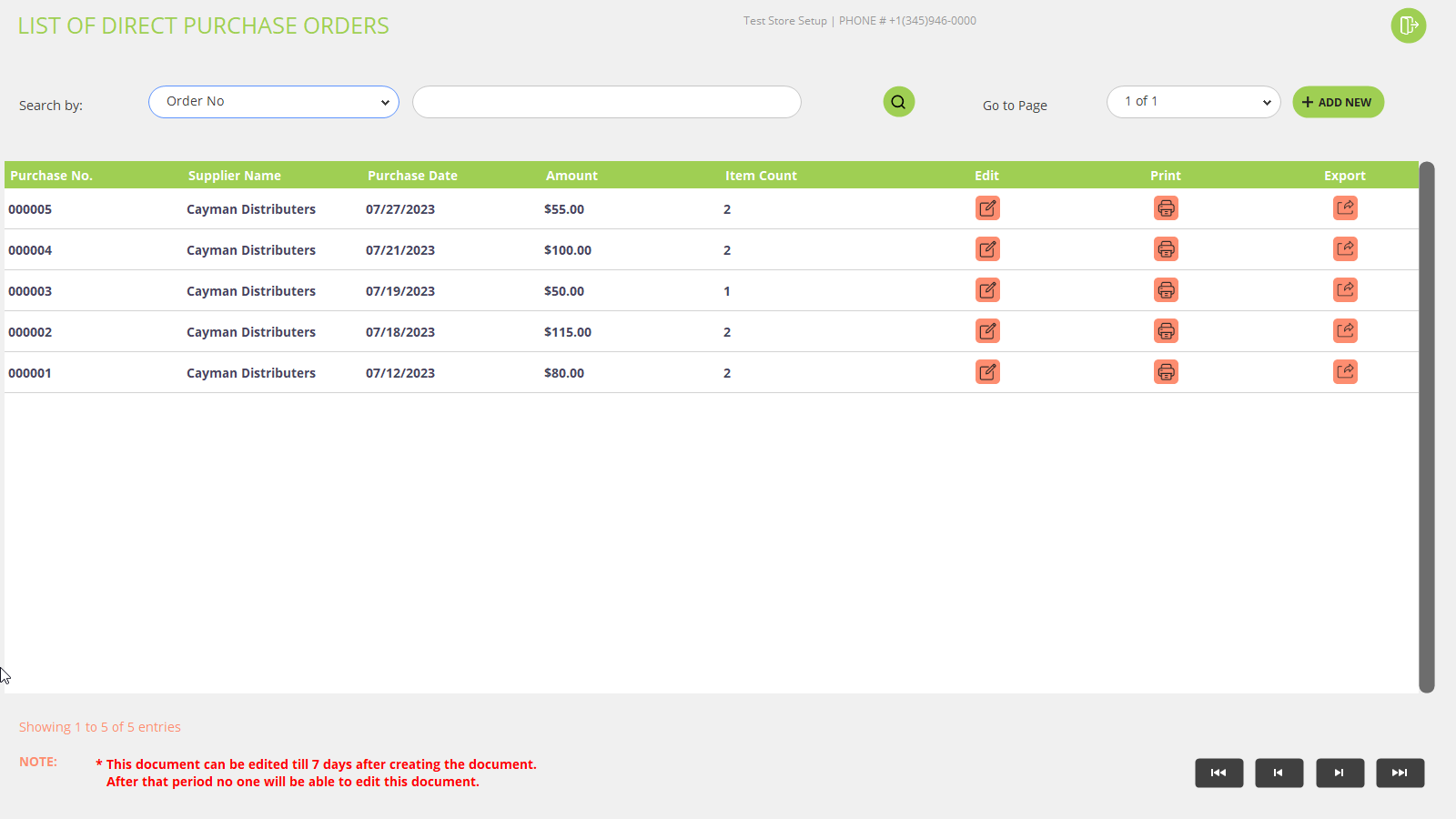 Click on the Direct Purchase option from the back office and you will be redirected to the Direct Purchase list of products screen. Please refer to the below screenshot: