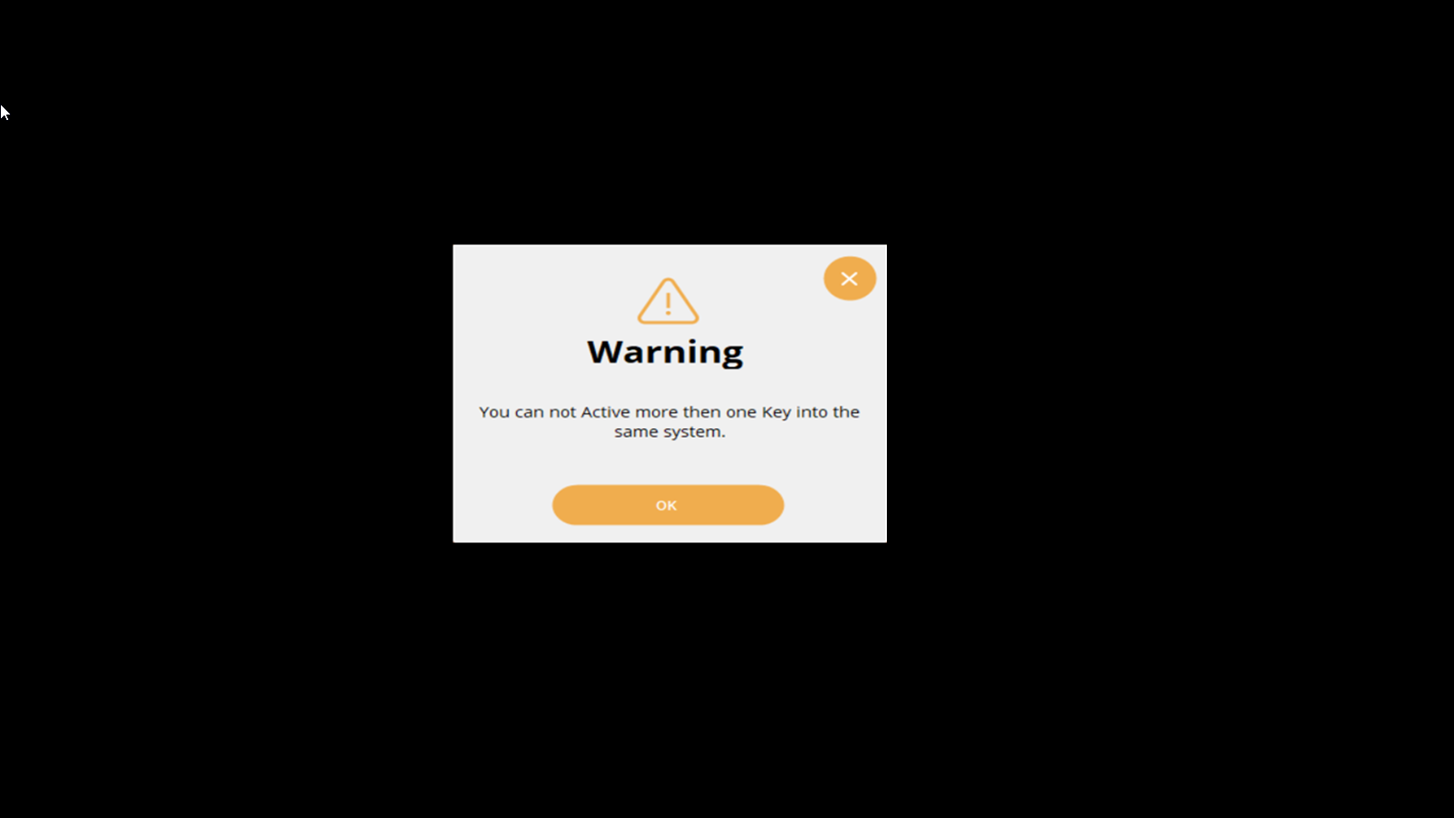 When you enter the key which is used on another POS then warning message shows, please refer the below screenshot: